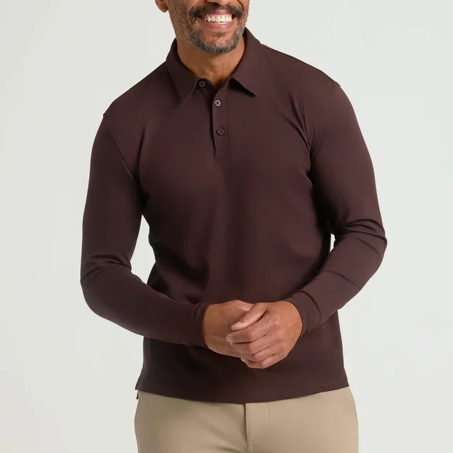 Factory Wholesale Men's Performance Breathable Cotton Long Sleeve Polo Shirt